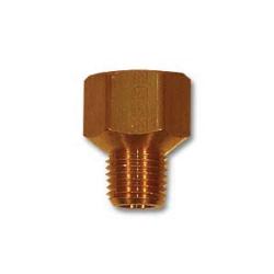 MID-AMERICA FITTINGS Extender Adapter, Connection Size 1: 1/2 in, Connection Type 1: FNPTF, Connection Size 2: 3/8 in, Connection Type 2: MNPTF, 1.19 in L, Brass, 1/2-14 x 3/8-18 Thread, 1200 psi, 0.93 in Hex, For Use With: Aluminum, Brass, Bronze, Copper, Iron and Steel Pipe, -65 to 250 deg F