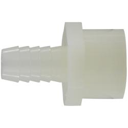 Adapter, Connection Size 1: 1/4 in, Connection Type 1: Hose Barbed, Connection Size 2: 3/8 in, Connection Type 2: FIP, Nylon, White, Maximum Operating Pressure: 125 psi, -40 to 200 deg F Operating