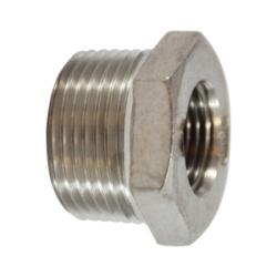 Hex Bushing, Connection Size 1: 3 in, Connection Type 1: MPT, Connection Size 2: 1-1/2 in, Connection Type 2: FPT, 304 Stainless Steel, 1-1/2-11-1/2 Thread, Pressure Class: 150 lb, 300 psi, Dimension Standards: ASME B1.20.1